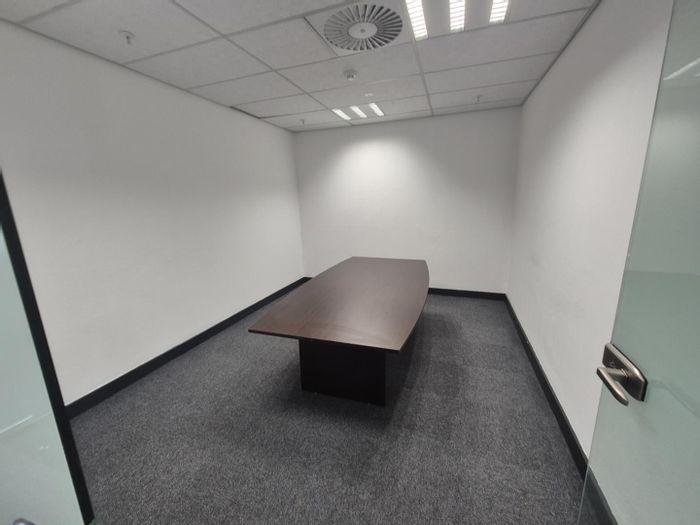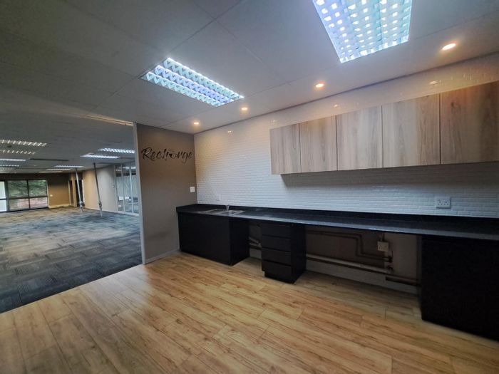 Office space of 896 m² with six private offices, two boardrooms, and a kitchen near Gautrain Station.