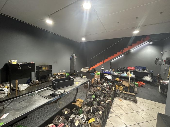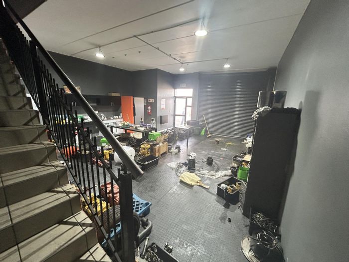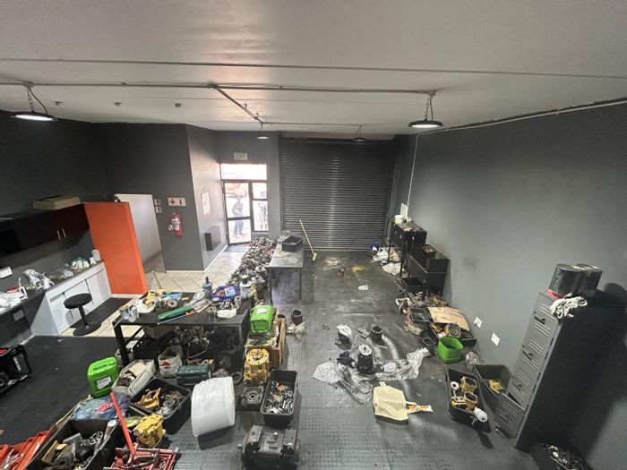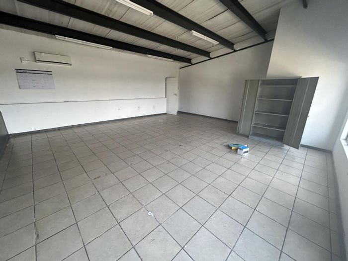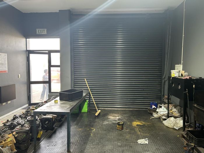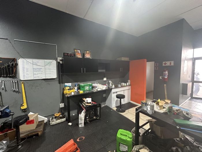Prime Spartan industrial unit in Kelvin Commercial Park, minutes from OR Tambo and major routes — bright 135m² workspace with roller shutter access, kitchenette, office and three garages.