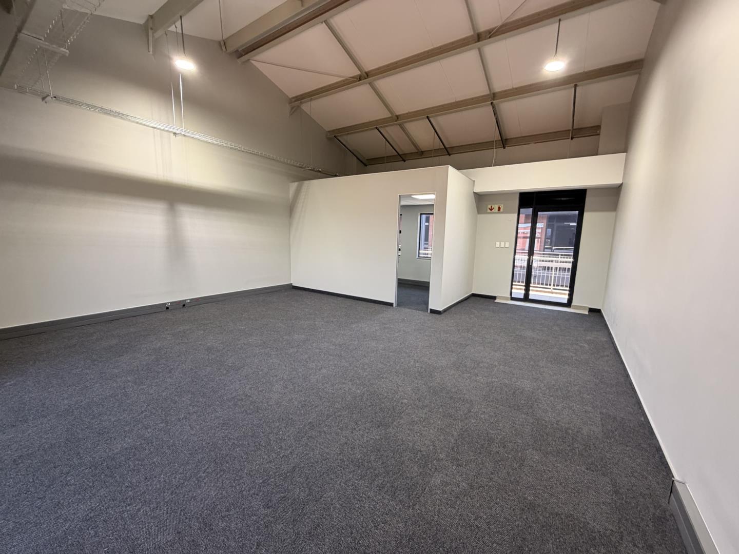 The office park offers 24 hour security, a generator for added operational reliability, and a communal patio area. Communal kitchen and bathroom facilities are available on each floor, ensuring convenience for tenants. Parking is well provided for, with one open bay and two covered bays available at R380 per open bay and R480 per covered bay.